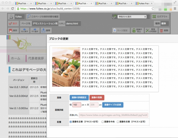 ウェブシステム(ホームページ)に、Plustickを組み込めば、専門のホームページ作成ソフトやIT専門知識がない担当者が、ブログを編集する感覚でウェブサイトを素早く・簡単にメンテナンスすることが可能となります。